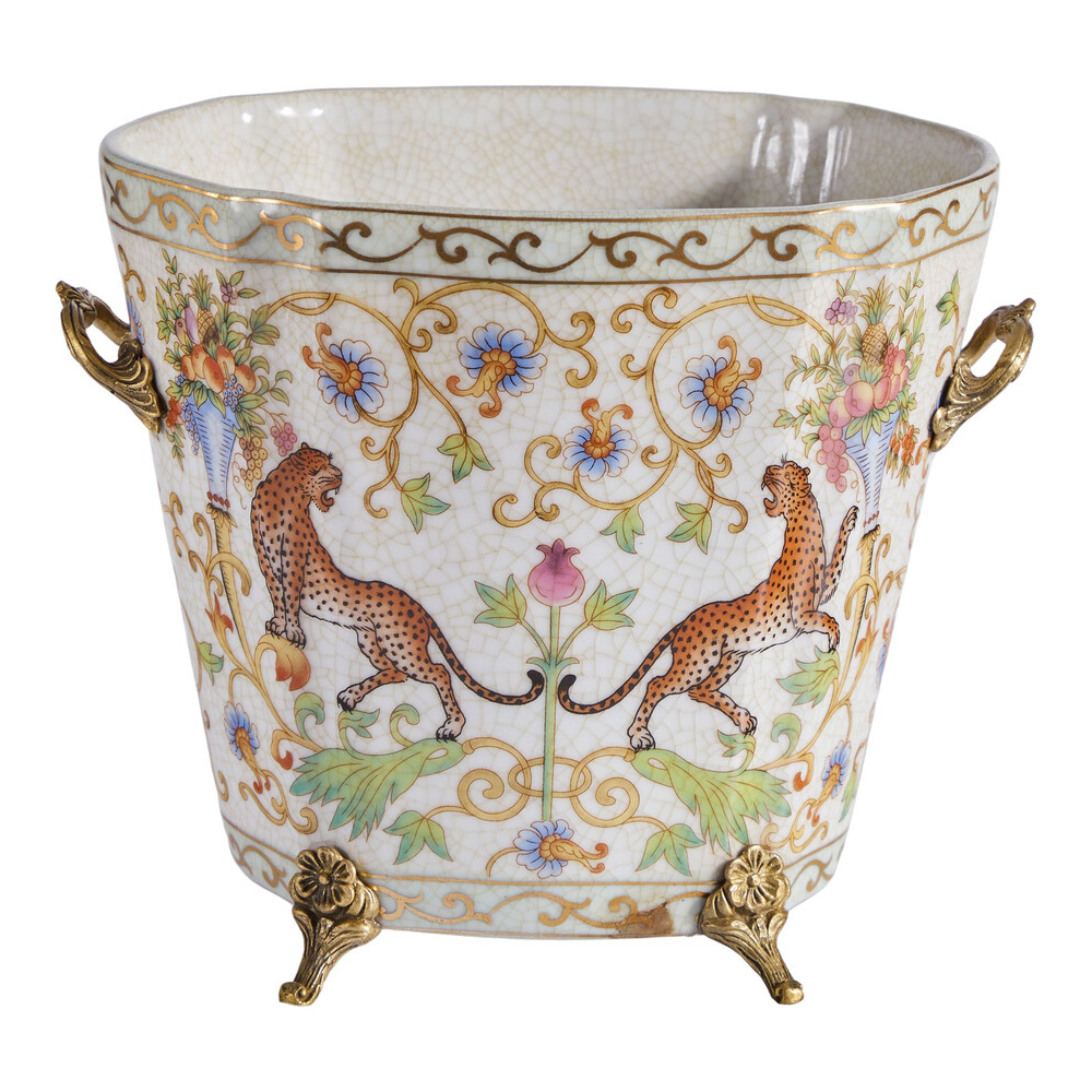 Кашпо с растительным и животным орнаментом на бронзовых ножках Turquoise Blooming Garden