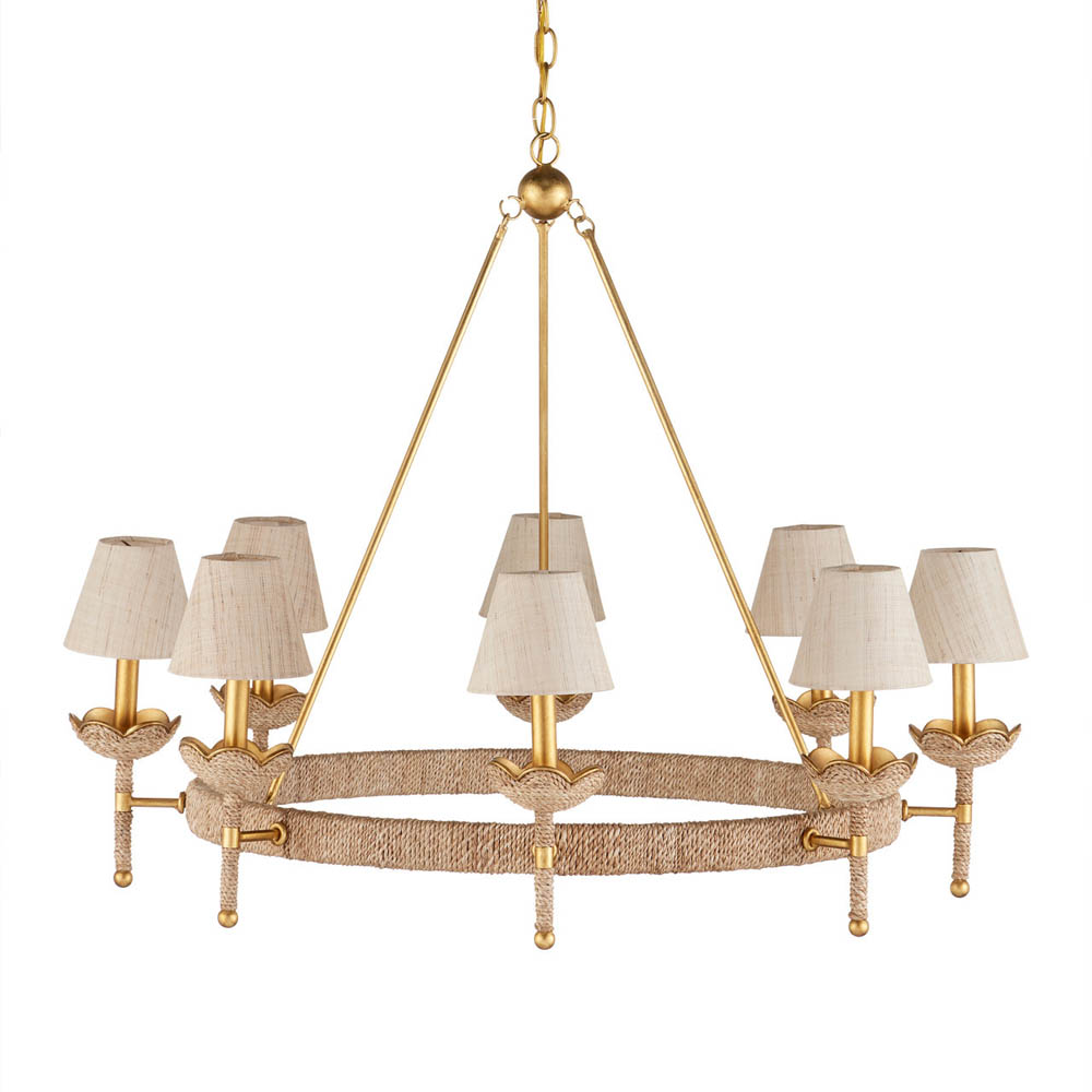 Люстра из кованого железа с отделкой плетеной веревкой и сусальным золотом Parisian Style